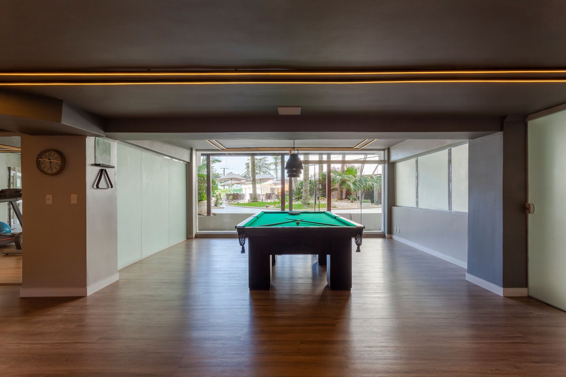 Espaço projetado para oferecer diversão e entretenimento aos hóspedes, proporcionando uma experiência lúdica e energizante. O centro das atenções é a variedade de jogos disponíveis. Há uma seleção diversificada de opções, incluindo mesa de bilhar, tênis de mesa (pingue-pongue), hóquei de mesa, além das opções de fliperama. A sala de jogos está localizada ao lado de nosso espaço aeróbico, o que permite uma transição perfeita entre atividades físicas e momentos de lazer.