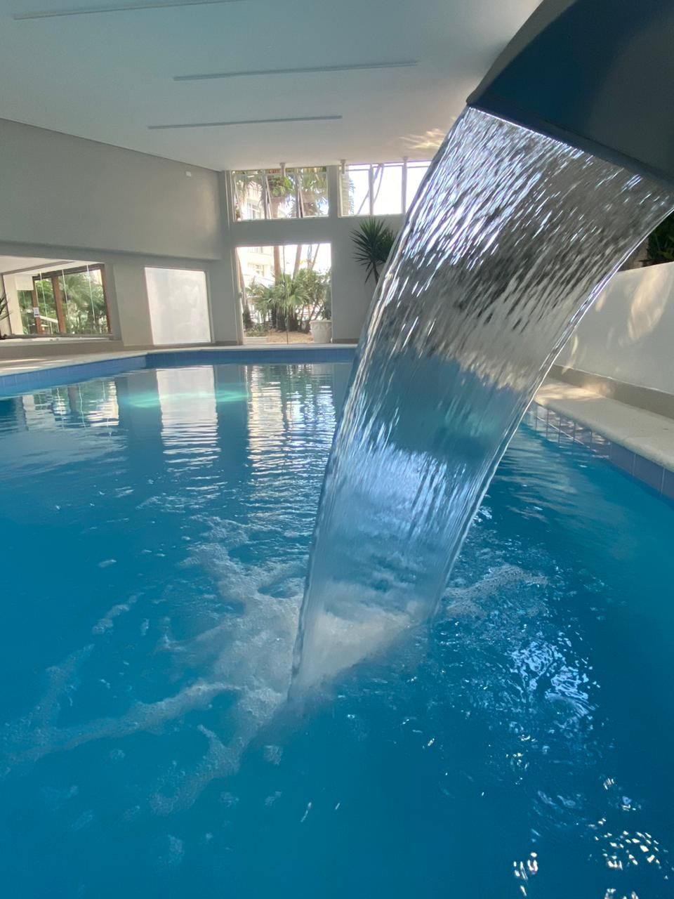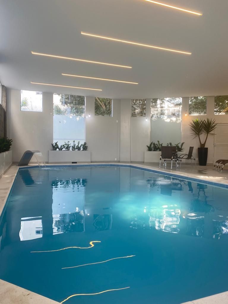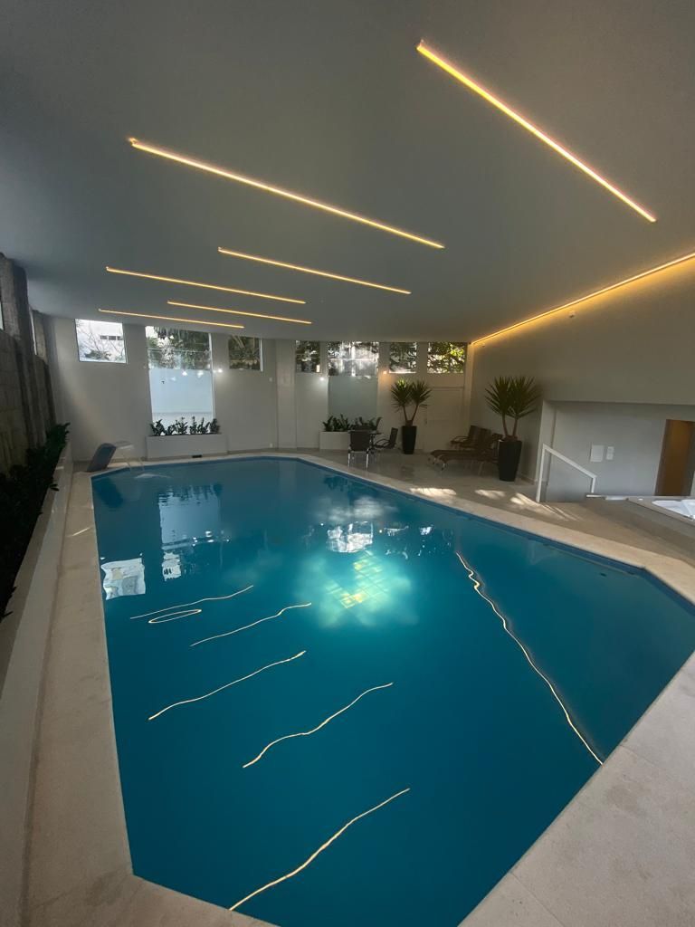 Refúgio relaxante e rejuvenescedor localizado perto da sala de jogos. Esta piscina oferece uma experiência revigorante para nossos hóspedes. Ao adentrar a área da piscina, você é recebido por um ambiente sereno e acolhedor. A piscina é cercada por janelas que permitem a entrada de luz natural, criando uma atmosfera luminosa e arejada.